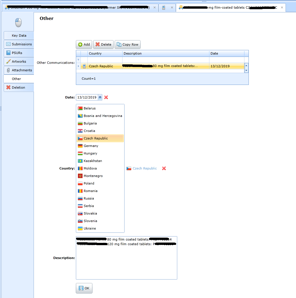 Detailnější údaje o stavu vyřízení v jednotlivých zemích eCTD sekvence:
